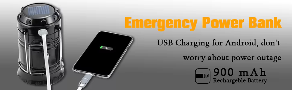 The solar panel on the device absorbs sunlight during the day and converts it into electricity, which is stored in the internal battery. You can then use the stored power to light up the lamp or charge your phone anytime, even at night.